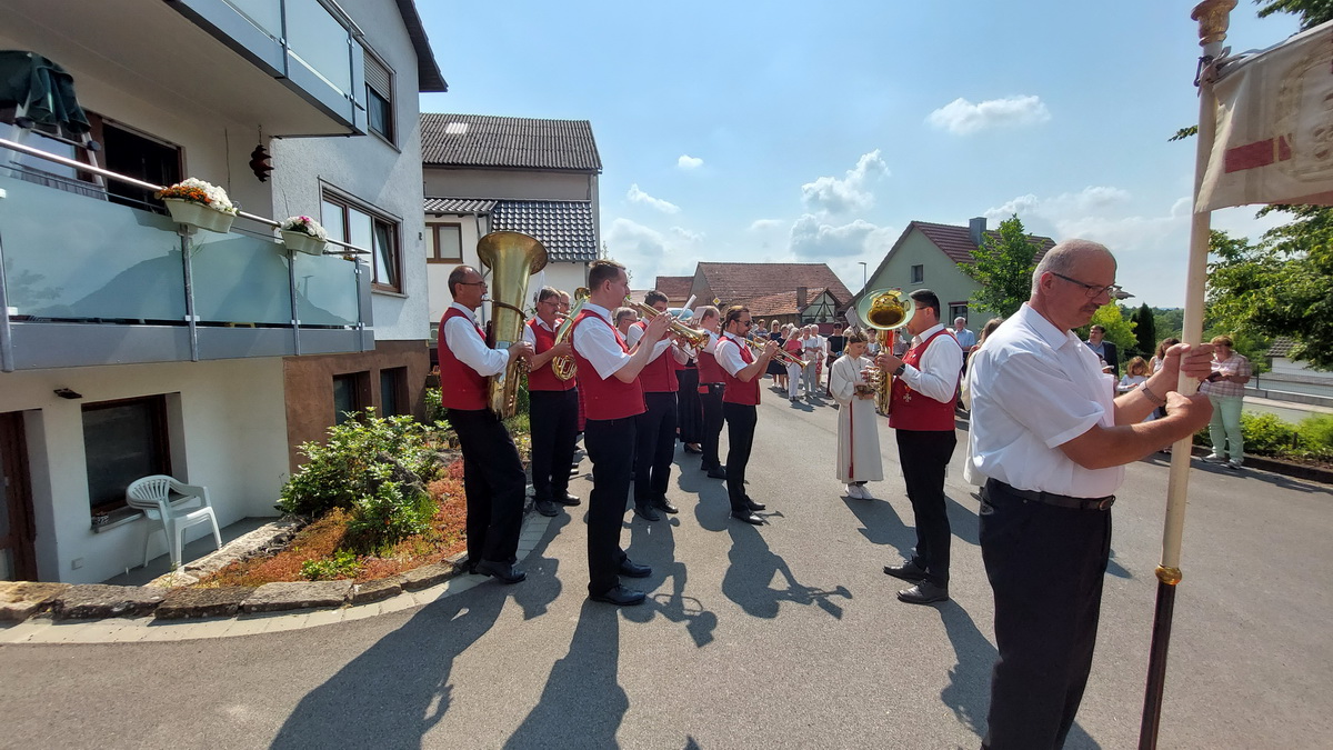 Bei Sonnenschein zogen die Brendlorenzer mit dem Allerheiligsten durch den ganzen Stadtteil - begleitet von Musikkapelle, Vereinsabordnungen und vielen Gläubigen. Die Straßen und Häuser waren vielfach geschmückt.
