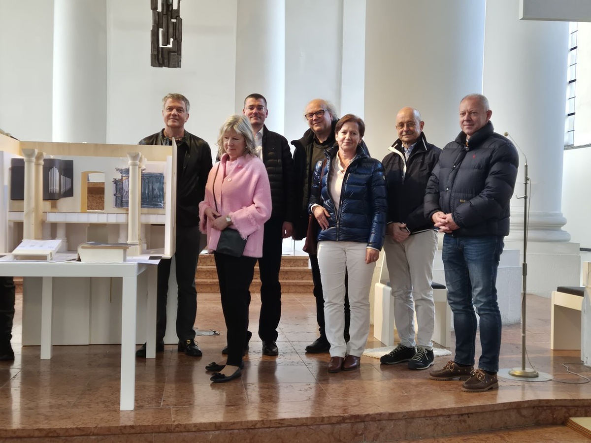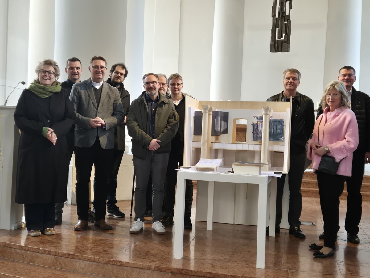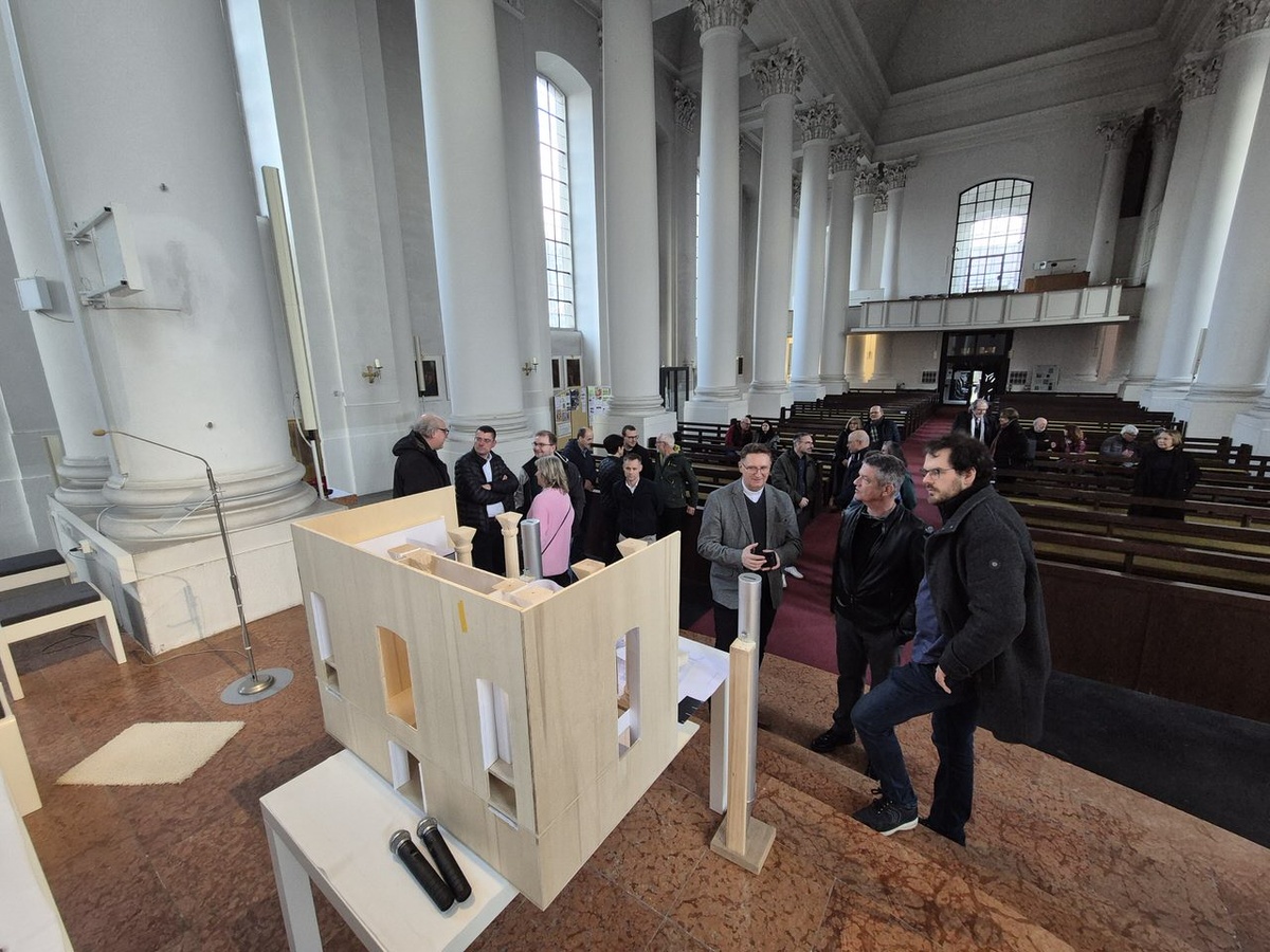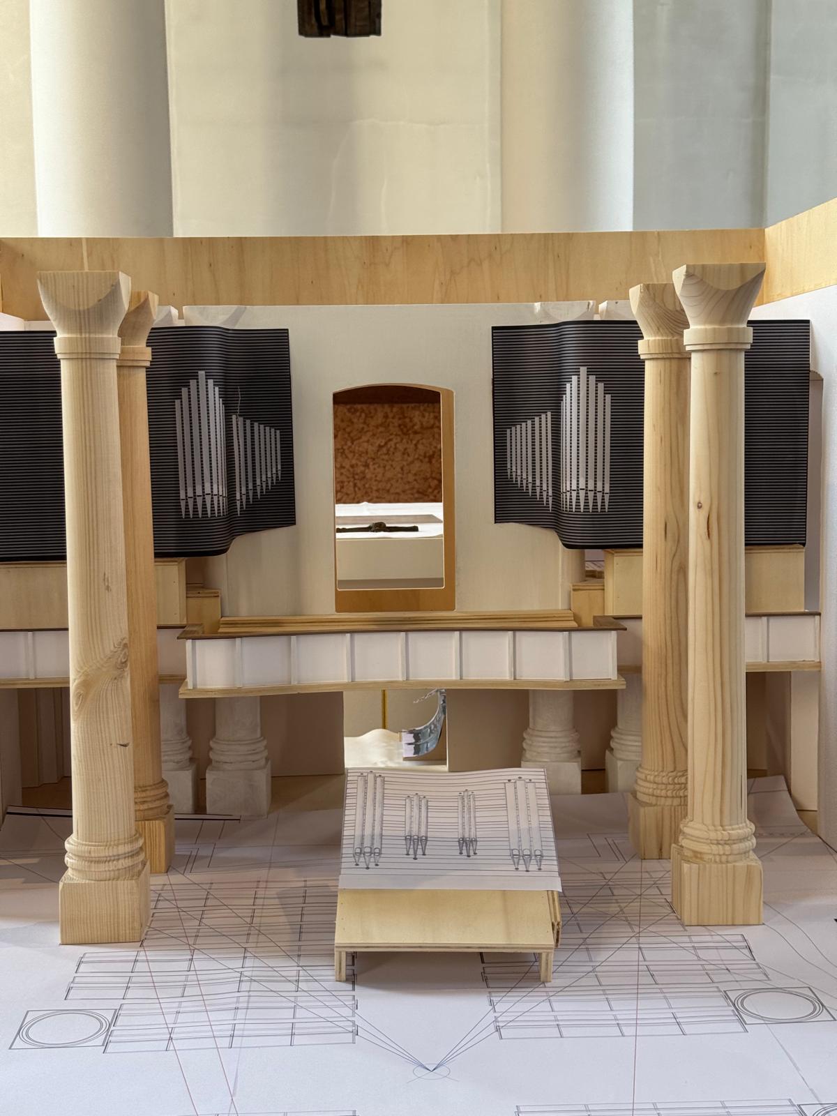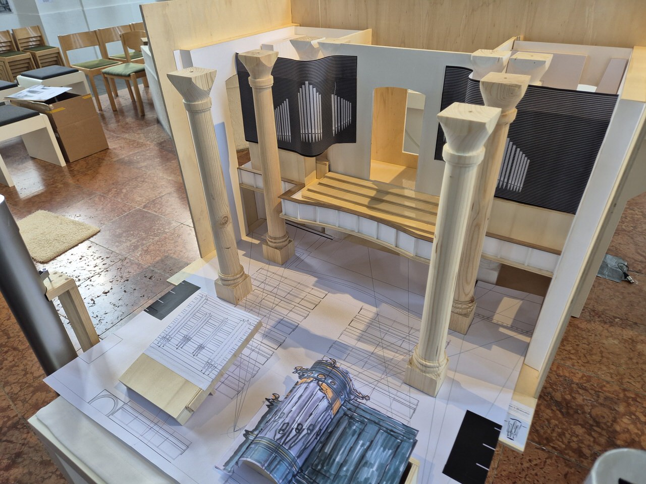 Besonders eindrucksvoll war ein Modell im Maßstab 1:20, das den hinteren Bereich der Kirche zeigt. Anhand dieses Modells wurde nicht nur die geplante Umgestaltung verständlich, sondern auch die Geschichte der Orgel lebendig: das ursprüngliche Erscheinungsbild der Orgel von Balthasar Schlimbach (1872), die Umbauten und klanglichen Veränderungen von 1934 sowie der letzte größere Eingriff im Jahr 1967.