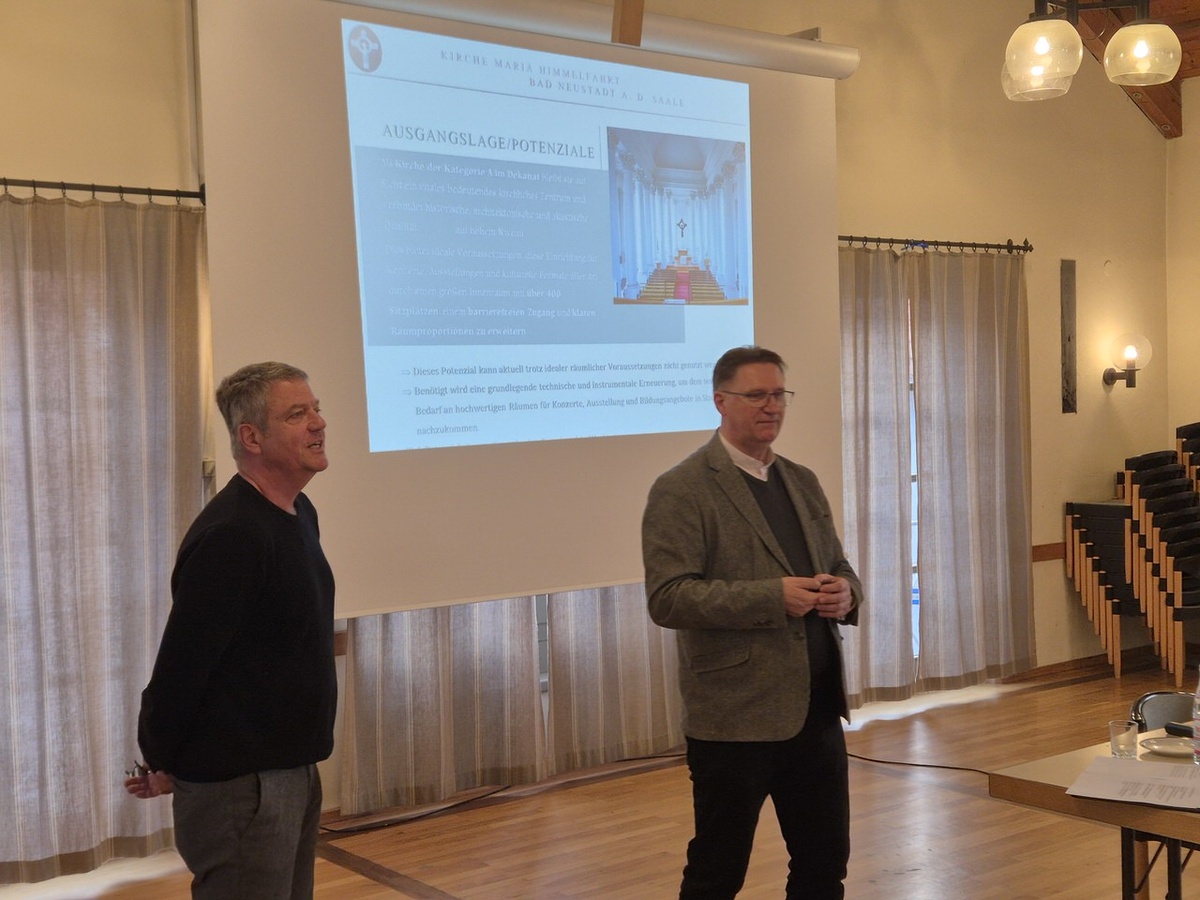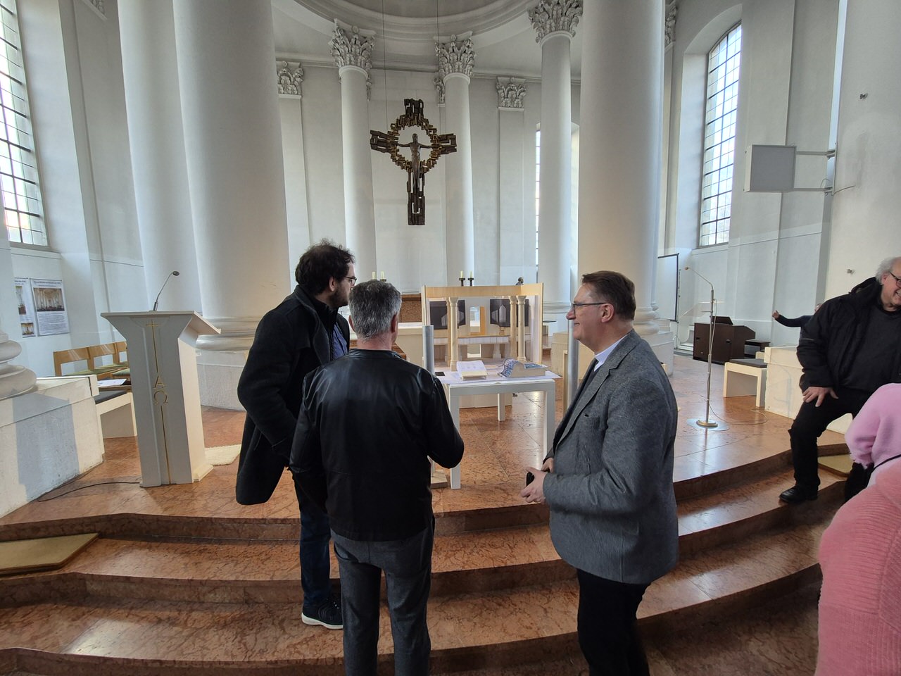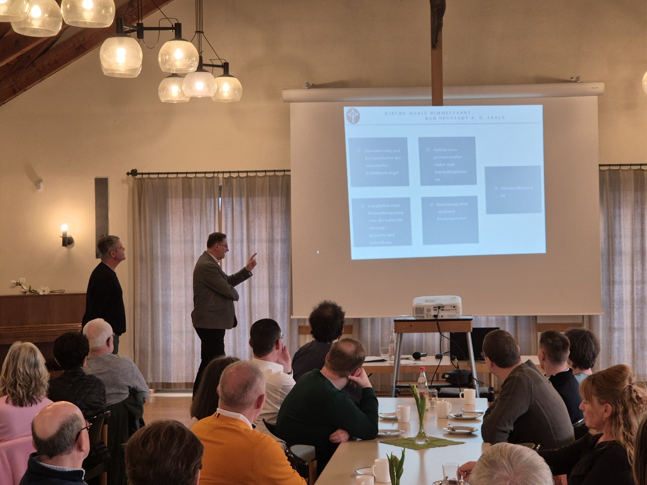 Im Anschluss wurde das Projekt im Gemeindehaus weiter ausgeführt. Pfarrer Andreas Krefft und Christoph Ziegler stellten die weiteren Planungen vor und zeichneten ein klares Bild der zukünftigen Nutzung des Kirchenraums.