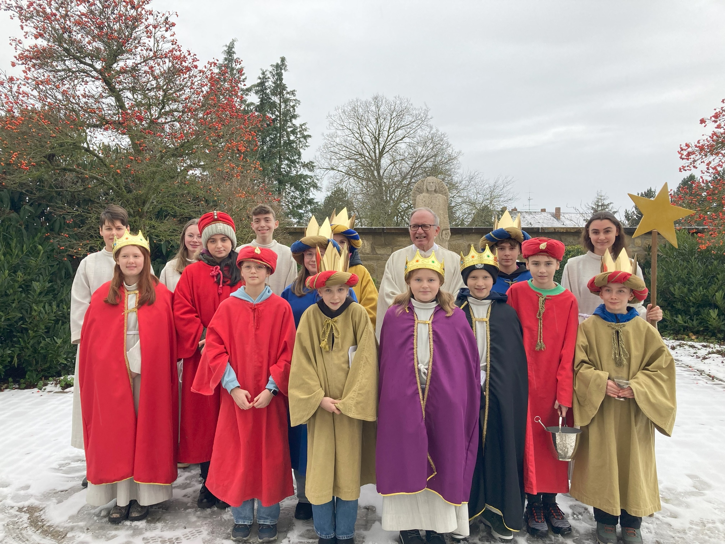 Pfarrer Thomas Keßler dankte im Voraus den Minis für ihre Bereitschaft und ihren Einsatz als Segensboten. In der Predigt bezeichnete Pfarrer Keßler die Sternsinger und Sternsingerinnen, da sie aus Glaubensgründen zu Fuß unterwegs sind, sogar als Pilger und Pilgerinnen. Pilger und Pilgerinnen der Hoffnung. Hoffnung für arme Kinder in Not, denen durch die gesammelten Spenden geholfen werden kann.