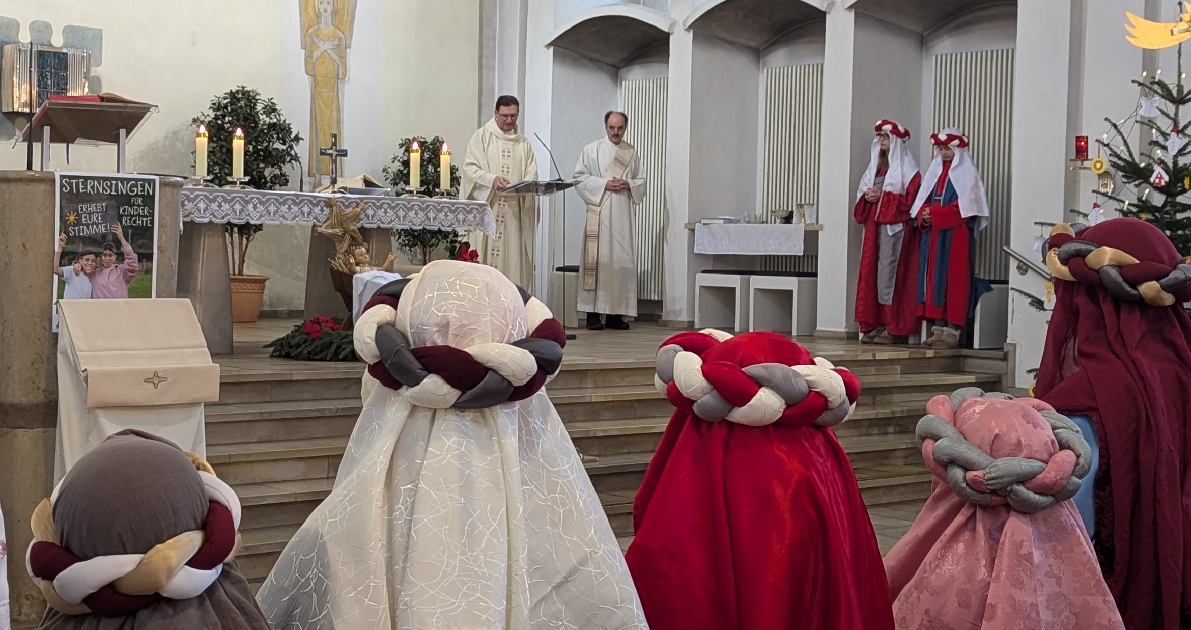 Schon am 5.Januar sandten Pfarrer Andreas Krefft und Diakon Wolfgang Dömling die Sternsinger in einem festlichen Gottesdienst in St.Konrad aus. Das Motto der diesjährigen Sternsingeraktion lautet:“ Erhebt Eure Stimme! Sternsingen für Kinderrechte“. Es möchte vermitteln, wie wichtig Kinderrechte sind und dass jedes Kind ein Recht auf diese hat.