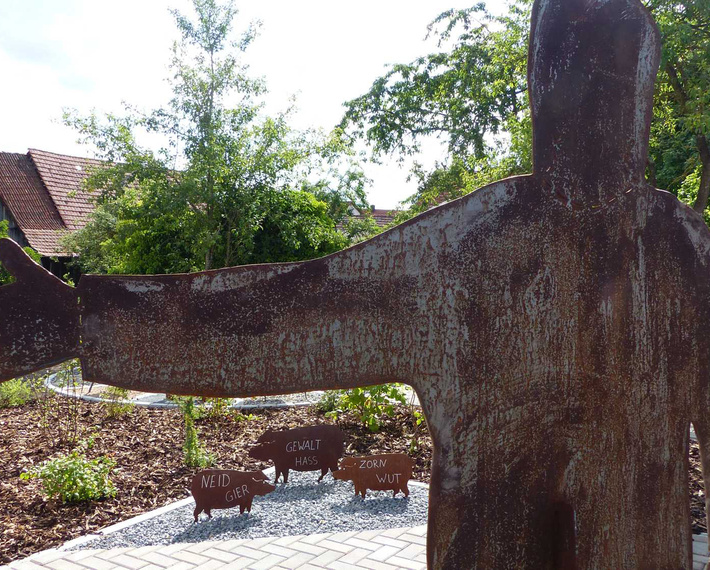 Zwölf Skulpturen zu ausgewählten Texten des Markusevangeliums wollen Sie zum Nachdenken bringen, über die Bedeutung seiner Botschaft für Ihr persönliches Leben. Neben jeder Skulptur befindet sich eine Tafel mit zugehörigen Texten sowie einer Frage als Anregung zum Weiterdenken.
